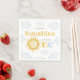 Completa tu decoración de mesa con servilletas personalizadas "Little Sunshine". Con el sol de acuarela brillante y nubes azules juguetonas para un look de fiesta cohesionado.