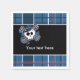 Servilletas de fiesta de cumpleaños con estampado de cuadros azules y calavera. Personaliza con cualquier texto.
