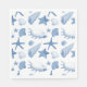 Esta servilleta de papel blanca se muestra con una linda impresión de conchas azules y blancas.