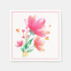 Estas servilletas de papel de alta calidad se muestran en blanco con una encantadora impresión de acuarela floral de color rosa vibrante.