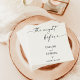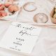Estas encantadoras servilletas de papel presentan un diseño minimalista limpio en blanco y negro y son una forma perfecta de acentuar la mesa de cóctel, comida o postre de su cena de ensayo de boda. Personalice fácilmente la mayoría de los colores y textos para que coincidan perfectamente con el tema de su evento.