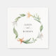 Corona de lirios florales y vegetación botánica pintada con acuarela elegante, servilletas de papel personalizadas.