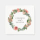 Servilletas de papel personalizadas con corona floral de coral y follaje botánico acuarela bohemio rústico. El estilo de la fuente del texto y el color se pueden personalizar.