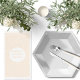 El terrazzo en naranja pastel o melocotón sobre un fondo blanco puede ser para fiestas o para combinar con las muestras promocionales de su stand en la feria.