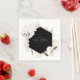 Servilletas de papel elegantes de flores bohemias para ducha de novia. Flores de acuarela blancas y follaje verde delicado marco geométrico negro.