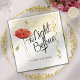 Consigue para ti algunas servilletas decoradas elegantes y hermosas para la cena de ensayo. Las servilletas vienen en un estilo moderno de caligrafía con fuente ~LA NOCHE ANTES~. Además, puedes personalizar el nombre de la novia y el novio. Las servilletas presentan brillo con flor de amapola roja y confeti para hacerlas lucir muy hermosas y elegantes.