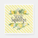 ¡Encontró a su pareja! Complete su decoración y sorprenda a todos en su despedida de soltera con nuestra plantilla de servilletas de limones main squeeze con estilo acuarela. Estas servilletas de limones main squeeze presentan limones y hojas amarillas y verdes en un diseño de servilletas.