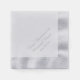 Para una cena sofisticada, personalice una servilleta de papel de color plata. Perfecto para una recepción de boda o evento corporativo. Incluye una fuente de escritura de color plata (C0C0C0). Se vende en cantidades de cincuenta.