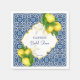 Servilletas personalizadas para despedida de soltera con azulejos azules, limón, Amalfi, Positano y Mediterráneo.