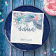 Servilletas para cócteles con tema de playa que presentan estrellas de mar y conchas de mar estilo acuarela con letras estilo manuscritas en azul pizarra. Perfectas para celebraciones de boda, aniversario y ducha con tema costero y náutico. Arte de KL Stock