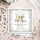 The design features a pair of beautiful watercolor champagne filled glasses, a silver glitter border and elegant handwritten script typography.