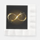 Oro, símbolo de infinito de joyas con estrellas doradas sobre fondo negro. Diseño con estrella dorada.