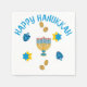Felices sentimientos de Hanukkah junto con menorah, dreidel, monedas y estrellas