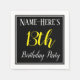 Este sencillo y elegante diseño de servilletas de papel presenta un mensaje como "La fiesta de los 13 cumpleaños de Name-Here", con el "décimo tercero" en lujosos textos de color amarillo, dentro de un área cuadrada de color negro con un simple contorno fronterizo. Se puede utilizar un nombre personalizado. Las servilletas como estas podrían ser usadas en una fiesta de cumpleaños para alguien que está celebrando su decimotercer cumpleaños. [~Z0000150]