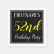 Este sencillo y elegante diseño de servilletas de papel presenta un mensaje como "Fiesta de cumpleaños número 52 de FirstName", con el "52" en lujosos textos de color amarillo, dentro de un área cuadrada de color negro con un simple contorno fronterizo. Se puede utilizar un nombre personalizado. Las servilletas como estas podrían ser usadas en una fiesta de cumpleaños para alguien que esté celebrando su cincuenta segundo cumpleaños. [~Z0000150]