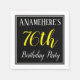 Este sencillo y elegante diseño de servilletas de papel presenta un mensaje como "La fiesta de cumpleaños número 76 de ANameHere", con el "76" en lujosos textos de color amarillo, dentro de un área cuadrada de color negro con un simple contorno fronterizo. Se puede utilizar un nombre personalizado. Las servilletas como estas podrían ser usadas en una fiesta de cumpleaños para alguien que está celebrando su cumpleaños setenta y seis. [~Z0000150]
