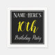 Este sencillo y elegante diseño de servilletas de papel incluye un mensaje como "La décima fiesta de cumpleaños de Name-Here", con el "décimo" en lujosos textos de color amarillo, dentro de un área cuadrada de color negro con un simple contorno fronterizo. Se puede utilizar un nombre personalizado. Las servilletas como estas podrían ser usadas en una fiesta de cumpleaños para alguien que está celebrando su décimo cumpleaños. [~Z0000150]