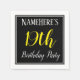 Este sencillo y elegante diseño de servilletas de papel presenta un mensaje como "La fiesta de cumpleaños número 19 de NameHere", con el "decimonoveno" en lujosos textos de color amarillo, dentro de un área cuadrada de color negro con un simple contorno fronterizo. El nombre se puede personalizar. Las servilletas como estas podrían ser usadas en una fiesta de cumpleaños para alguien que está celebrando su decimonoveno cumpleaños. [~Z0000150]