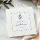 Servilletas de papel de despedida de soltera azules y amarillas inspiradas en Italia con limones de doodle dibujados a mano en azul marino y rayas amarillas. Personaliza con nombre y fecha del evento.