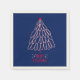 Sencillo árbol de Navidad estrella con moderna tipografía de Feliz Navidad y servilletas de cócteles de estrellas modernas. Árbol de Navidad rosa con estrella roja y vacaciones perfectas en medio de servilletas mod fiesta.