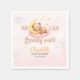 Celebrate the arrival of your little bear with our baby shower design for a girl featuring a cute teddy bear sleeping on clouds. The design features modern typography in shades of brown and yellow. Add a touch of tenderness and elegance to your baby shower with this bear design. To see complementary products for your event, check out the collection of this cute design.
