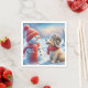 Un muñeco de nieve alegre y un adorable cachorro, ambos vestidos con un atuendo cálido de invierno, comparten un momento nevado bajo un cielo de color pastel