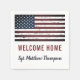 Patriótico Estados Unidos Bandera Militar Bienvenida Fiestas Napkins. Presenta a tu soldado como fiesta de regreso con esta bandera de EE.UU., servilletas patrióticas de bienvenida a casa fiesta. Diseño de la bandera estadounidense en madera rústica. Estas servilletas militares son perfectas para todas las ramas del ejército...ejército, marines, marina, fuerza aérea, fiestas militares. Vea nuestra colección para encontrar invitaciones a casa de bienvenida militar, regalos, favores de partido y suministros. DERECHOS RESERVADOS © 2021 Judy Burrows, Black Dog Art - Todos los derechos reservados. Soldado militar de bandera estadounidense da la bienvenida a Fiestas de casa