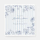 Decorate the table of your "something blue" bridal shower with our custom paper napkins featuring classic chambray stripes and navy floral line art.
