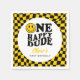 Sonrisa de cuadros amarillos frente a la servilleta de papel personalizado de primer cumpleaños.