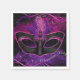Napkin Fiesta de mascarada rosa y morada. Elegante máscara de plumas con polvo y perlas espumosas.