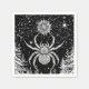 Magische Serviette mit Motiv "Spinne mit Mandala im Netz unter nächtlichem Sternenhimmel".