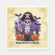 Keep yer claws clean and yer table cursed in style with these Pirate Halloween party napkins! Featuring a spooky skeleton pirate with jack-o’-lanterns, bats, and a vintage treasure map backdrop, these festive napkins are the perfect finishing touch for your haunted pirate bash. Whether you're servin' grog or diggin' into ghostly grub, these napkins bring both flair and function to yer table. With rich purple and black accents and a bold “Happy Halloween Matey!” message, they coordinate seamlessly with matching paper plates, cups, and invitations from the full Pirate Halloween Collection. Perfect for adult costume parties, spooky shipyard dinners, or any Halloween gathering where pirates rule the night! The text is editable. Edit from the product page, or to change font style or color, use the design tool.