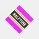 Este diseño deportivo, atlético, presenta texto HALFTIME en negrita dentro de una banda negra de centro ancha resaltada con rayas de carreras blancas y amarillas contra rayas externas brillantes de color rosa tropical. El texto se puede personalizar.