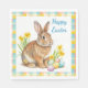Streamline mealtime with our practical paper napkins. The design showcases an illustration of a wild rabbit, colorful Easter eggs, and cheerful daffodils, along with a "Happy Easter" message. The artwork is presented on a white background, bordered by a pastel pink, blue, and yellow spring plaid pattern, ideal for adding a celebratory element to your Easter event. For a coordinated look, explore the matching tear-away placemat within the Easter store category, specifically under party supplies.