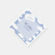 Servilletas de papel para la celebración de la boda del Sr. y la Sra. con nubes caprichosas en un fondo de cielo azul con los recién casados en la gloria. Personalice el apellido y la fecha del evento en fuente azul elegante para hacerlo suyo. La divertida servilleta de cóctel es parte de una colección de boda temática casual única. No te pierdas la diversión - ¡ordena la tuya hoy!