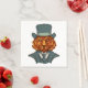 Un tigre vestido con un traje verde azulado y un sombrero de tope pintado con un fondo mudo, dando un aspecto elegante y caprichoso. La expresión seria del animal es enfatizada por el atuendo formal.