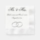 Boda servilleta con el titular "Sr. y Sra." El nombre de la novia y el nombre del Groom son personalizables junto con la fecha. En la parte inferior hay una imagen de doble anillo.