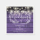 Estas elegantes servilletas con luces de cuerda de bonito y un floral dibujado a mano pueden personalizarse con su información en letras blancas de moda sobre un fondo rústico de paneles de madera violeta. Diseñado por Thisisnotme©