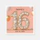 These enchanting Sweet Sixteen paper napkins are tiny canvases of joy, ready to sprinkle magic on your special day! A soft blush pink background sets the stage for a dazzling "16" gleaming in gold and pearl-studded glory, catching the light like a thousand tiny stars. The word "Sweet" flows elegantly across, a sweet ribbon of personalization, while playful golden confetti and festive balloons float around, mirroring the excitement of a grand party. What makes them truly special? Every word is yours to command! These aren't just napkins; they're your design, custom-tailored to perfectly capture the essence of your Sweet Sixteen.