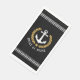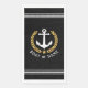 Toalla de fiesta personalizada con el nombre de su barco, el nombre de su familia u otro texto deseado. Con un ancla de barco vintage diseñado por un personalizado con laurel de estilo dorado, una estrella y rayas de cuerda náuticas sobre negro o ajustar fácilmente el color primario para que coincida con el tema actual. Ideal para cumpleaños, fiestas, vacaciones o cualquier ocasión.