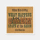 Excelente regalo para hombres y mujeres al aire libre con una cabaña en el bosque con un rifle y un tubo de pesca afuera. Los residentes de cabañas en las ventanas están teniendo un fiesta y mostrando su gran captura de peces. El texto dice lo que pasa en la CABIN se queda en la CABIN. Fondo de acabado de grano de madera impreso. ¡PinkInkArt original!
