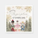 Add an elegant touch to your little one’s celebration with this Sugar Plum Nutcracker Napkin! Featuring gold snowflakes, a ballerina, Nutcracker soldier, and Mouse King surrounded by festive trees, this design brings Nutcracker ballet charm to your winter wonderland or Christmas birthday. Perfect for a holiday dessert table, first birthday, or festive baby girl party.