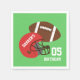 ¡Una servilleta con un futbol marrón y un casco rojo de fútbol que va bien con una fiesta de cumpleaños relacionada con el fútbol! Personalice con mensaje fiesta en el espacio disponible. Un fondo verde para ir con el parche de césped del campo de fútbol que puede cambiar en modo de personalización para que coincida con los colores de su fiesta. ¡Un gran tema para los chicos de cumpleaños que aman o disfrutan jugando fútbol!