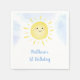 Estas bonitas servilletas de cumpleaños cuentan con un sol dibujado a mano y nubes acuarelas.
