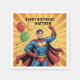 Celebrate your little hero in true comic-book style! This fun and colorful superhero birthday party design features a bold caped hero, festive balloons, and confetti on a bright sunburst background—perfect for an action-packed boys birthday celebration.
