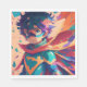 Niño de anime de superhéroes azules y rojos con servilletas de papel de cumpleaños de capa.