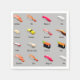 servilletas fiestas con imágenes de sushi y de los diferentes tipos en un fondo gris claro.