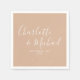 Tan taupe elegante boda de escritura de firma con nombres de estilo, estas servilletas modernas se pueden personalizar con su información en letras blancas de moda. Diseñado por Thisisnotme©