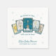 This tarot themed baby boy shower napkin features a five-card spread with hand-drawn illustrations of The Sun, The Star, The Baby, The Moon, and The Chariot, each reimagined with sweet baby motifs like a rattle, bottle, and carriage. The message reads “The future is clear... the baby will soon be here,” with space below to personalize the event name and date. Light blue twinkles and star accents in the background add a magical touch to your table setting. A perfect match for celestial baby shower invitations, magical baby shower aesthetic, tarot inspired showers, and Halloween baby shower ideas. Designed to coordinate with other items in the tarot baby shower collection.