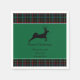 Tartán negro, verde y rojo con banda verde festiva y silueta de reno sobre servilletas de cóctel de Navidades.
